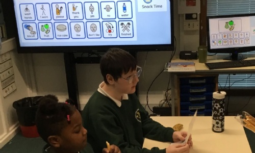 In Blossom, we have snack time every day. Most children in Blossom choose to bring in their own healthy snack but we also have a healthy school snack that we encourage all the children to try. We have visuals to support their communication when they are asking for their snack.