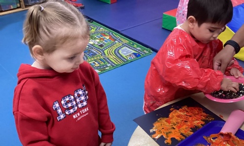 This week we have been learning about Bonfire Night and the children have been making their own firework pictures. We used different colours of paint and a paper roll to create the bright and colourful fireworks. We then added glitter to make our pictures sparkle. Afterwards, we read a story about firework night and learnt new words like whizz, bang and pop as the fireworks go across the sky. In our builder's tray, the children had the opportunity to make patterns in the glitter. We had zigzags, circles and spirals.