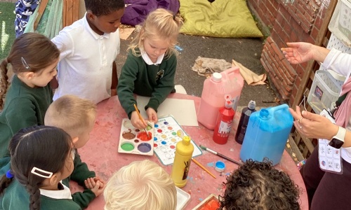 Outside, the children have enjoyed mark making with chalks on the playground, using big movements to create colourful patterns and pictures. It’s been wonderful to see their creativity and excitement shine through!