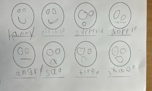 This week we have been talking about different feelings we have throughout the day. We have also been noticing the different feelings that characters have in a story. We read Ruby's Worry again and talked about her feelings throughout the book. Then the children drew the different faces to show each of the feelings.
