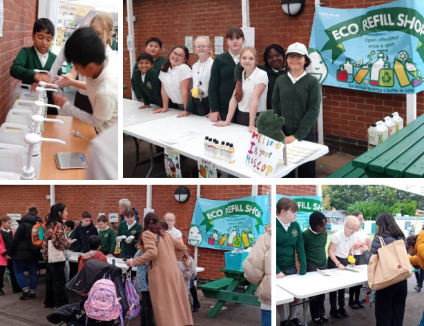 Well done to the team from Year 6 for successfully running their first Eco Refill Shop after school today. They worked well together and thanks to your support have managed to help the planet by saving 28 plastic bottles. I hope that you like the products that you purchased and that you can bring your bottle back again for a further refill at the next sale on Friday 5th December.